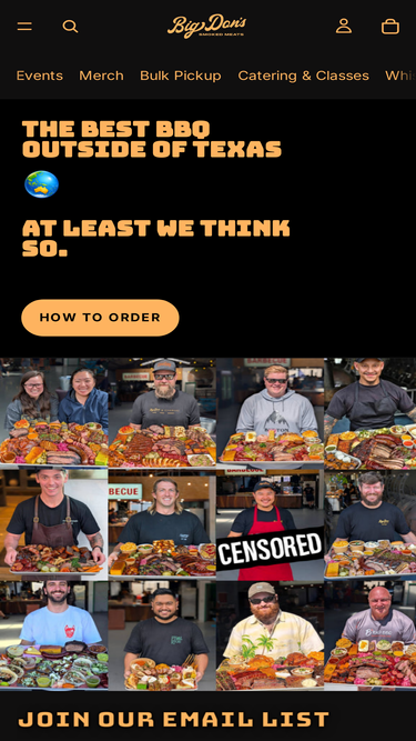 91%Welcome to Big Don's. Please Read ⤵️ We are a 100% Pre Order only restaurant, no Walk Ins. The Menu is posted each Monday on Instagram and Facebook, it changes based on weather, meat availability, etc. Bookings /Orders open Tuesday at 7pm on this website. For the last several years we've generally sold out within 5 minutes. So be ready. ✌️ We are Open Saturdays only. Always the same routine every week. ✌️ 📍Tips: 1. BYO camp chair. We have limited seating. You'll be way more comfortable. Our venue is rustic to say the least, but with plenty of space. 2. Every order is packed take away by default, but BBQ is always best eaten freshly sliced. Stay and tail gate! Bring a chair, an esky and a group of friends. 3. Wait times can vary. When we open expect 60-90 minutes wait in line as folks chase till specials. With the wait easing by the end. If you don't want to wait, come in the final hour we're open. Everything is cooked and served fresh. We are not fast food. 4. The Address comes through after ordering, we are located in the Bayswater industrial area. 📍Please note the photos are just examples, order via text menu each week. Thanks for your interest. Any questions please ask via Instagram. ❤️ Love Don