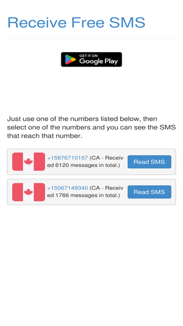 Try our free online SMS receive service now to get temporary phone numbers for SMS verification. Protect your privacy, suitable for all kinds of verification needs. Simple, fast, secure. No registration required to get free USA, Canada, UK, France, Russia, Ukraine phone numbers and more!