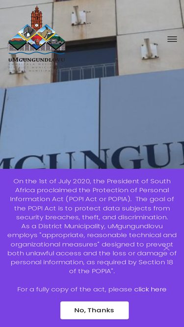 Welcome to the official website of uMgungundlovu District Municipality. · Tel : 033 897 6700 · Email : info@umdm.gov.za