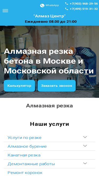 97%⭐ ⭐ ⭐ █▬█ █ ▀█▀ алмазная резка бетона, кирпича и гранита по низким ценам в москве и области. ✅ без лишнего шума и пыли. режем стены, перекрытия, проемы в монолитном армированном бетоне. ✅ есть допуск сро.
