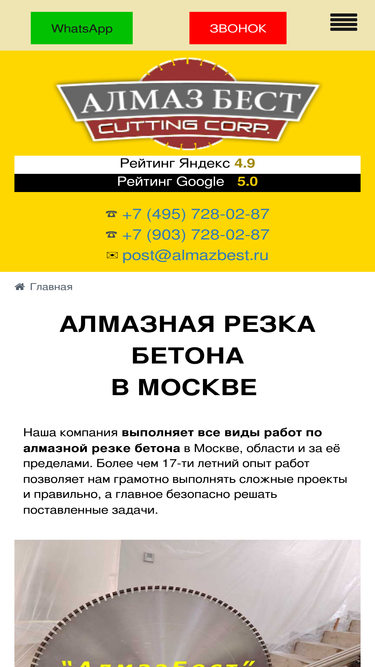 97%резмастер предлагает услуги по алмазной резке бетона. конкурентные цены, положительные отзывы, портфолио работ. все услуги имеют лицензии и сертификаты.