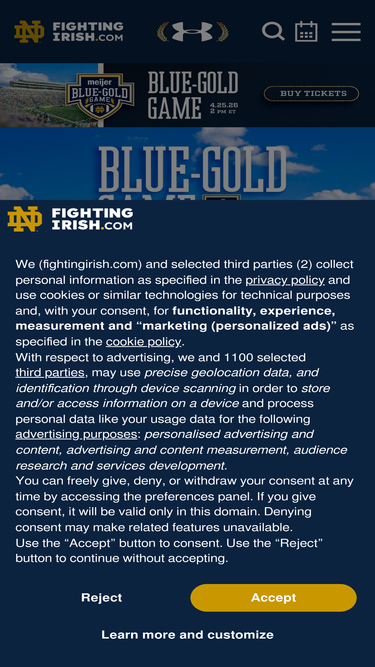 87%The Official Athletic Site of The Fighting Irish. The most comprehensive coverage of Notre Dame Athletics on the web with highlights, scores, game summaries, and rosters. Powered by WMT Digital.