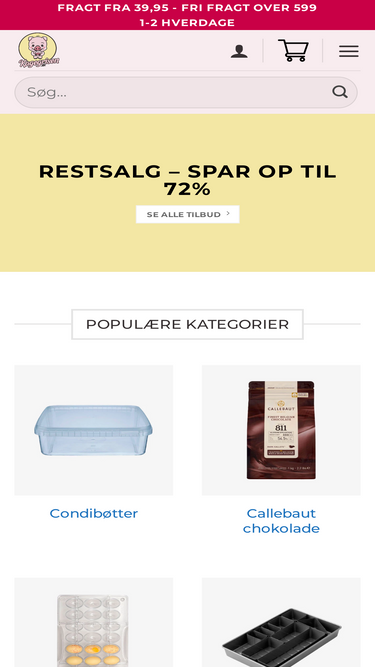 87%Bage- og kageudstyr samt alt hvad man kunne ønske sig til chokolade, konfekt og desserter.