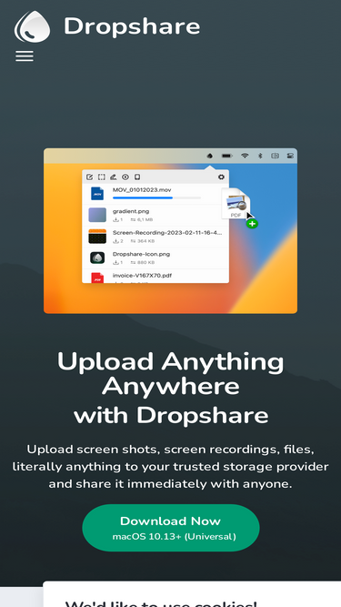 79%upload screen shots, screen recordings, files, folders, just anything with dropshare on macos and ios.