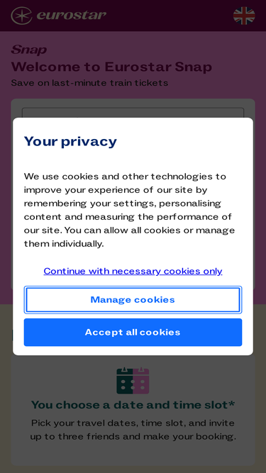 88%are you flexible with your travel time? embark on a eurostar train with the lowest fare - you pick the day, we pick the time! available now on eurostar.com
