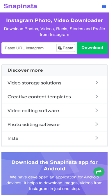 65%如何在Android上下載Instagram的照片和影片?SnapInsta下載器是一個工具,協助您快速地將Instagram上的影片、照片、Reels、Story和Profile下載到Android裝置上。支持在網頁瀏覽器上儲存和下載Instagram影片,不需要安裝軟體。