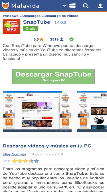 82%Descargar SnapTube para PC Última Versión Gratis. Con SnapTube para Windows podrás descargar vídeos y música de YouTube en diferentes formatos. Es rápido y presenta un diseño muy sencillo y funcional. Entre los programas para descargar vídeo y música de YouTube destaca uno como SnapTube. Este se...