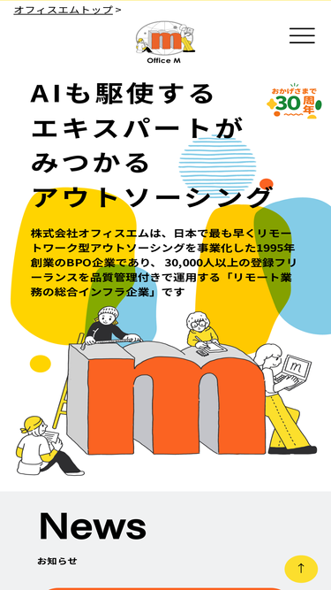 86%業務の人材不足はオフィスエムにお任せ!30年の実績をもつオフィスエムには、様々なスキルをもったエキスパートが3万人在籍。ご希望の仕事にあわせて、貴社の業務をAIも駆使しながら遠隔からサポートします。課題解決のためのコンサルティングも人気です。