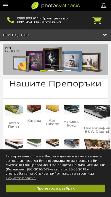 93%Ние можем да ви предложим отпечатването на снимки online върху фотохартия, или в голям формат, или печат на снимка върху канава.