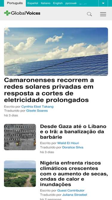 100%Vozes Globais (Global Voices) é uma rede internacional de blogueiros que traduzem, reportam e defendem blogs e mídia cidadã de todo o mundo.