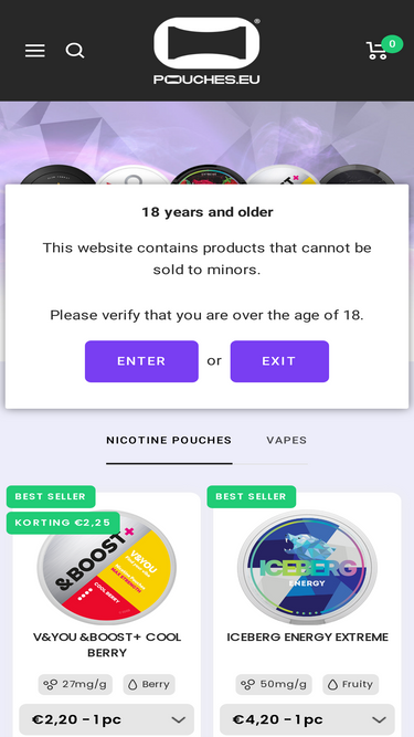 Buy high-end snus and nicotine pouches at Velo, Zyn, Iceberg, Camo, Cuba, Killa & Pablo. Buy at POUCHES.EU for quick EU shipping and lowest prices on ultimate brands.