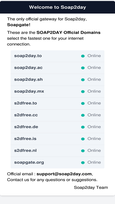 83%the only official gateway for soap2day, soapgate! these are the soap2day official domains select the fastest one for your internet connection.