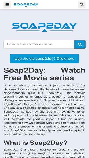87%The official SOAP2DAY website. Watch free movies and TV series online with SOAP2DAY; no need to use soapgate.org or soap2day.to. Try it now for free—no registration needed!
