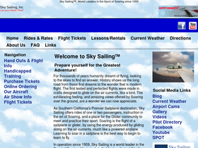 sky sailing - the greatest adventure. world leaders in the sport of soaring. sailplane (glider) rides. sailplane tours of some of california's natural beauty. sky sailing offers sailplane rides (for one or two passengers), rentals and instruction since 1959. handicapped training available. located in warner springs, ca. ne san diego county, east of palomar observatory. aviation recreation at it's very best! soar.skysailing.com