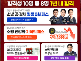 81%10명 중 7명 필기합격, 지난 1년간 합격생 273.5% 증가, 합격시 100% 환급, 소방전문과목 및 행정법 모두 강한 ★용자패스★
