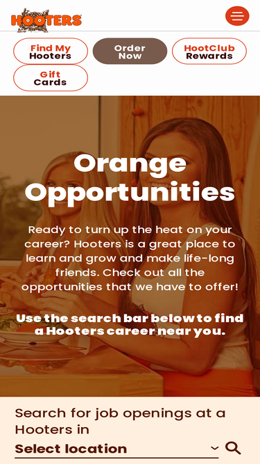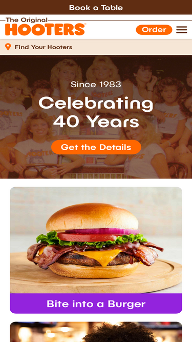 100%At Hooters, you'll find craveable food and wings, cold beer, sports, and of course, Hooters Girls. View our menu online and find a location near you. Order online for takeout or delivery!