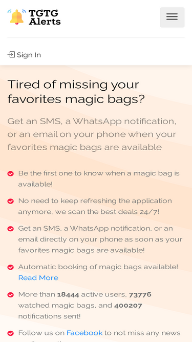 67%Marre de louper vos paniers Too Good To Go favoris? Créez votre alerte et recevez une notification sur votre téléphone dès qu'un marchand met en ligne de nouveaux paniers!