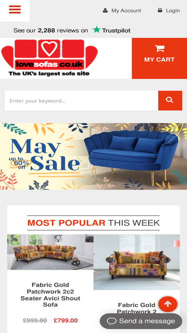 88%Wide variety of sofas, corner sofas, recliner sofas and chesterfield sofas in attractive upholstery: patchwork, velvet, leather, and more! Free England and Wales delivery, flexible finance options, and hassle-free returns.