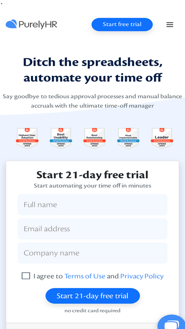 PurelyHR offers software to simplify everyday tasks. Modules for time-off and leave management, time tracking, employee data management, performance reviews, and more.