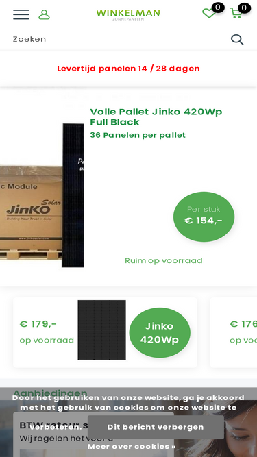 Winkelman Zonnepanelen verkoopt en installeert zonnepanelen voor particulieren en bedrijven.