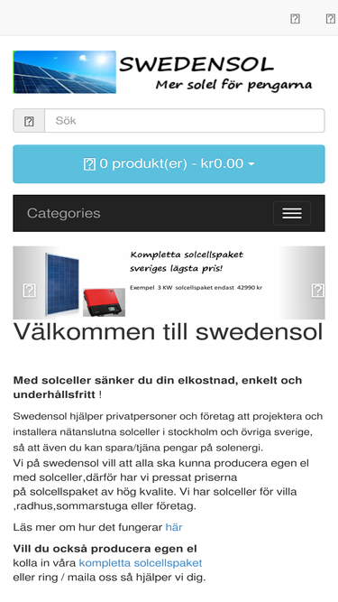 30%solceller som sänker din elkostnad, producera egen el det är enkelt ,vi har färdiga solcellspaket till lägsta pris och hög kavalite.