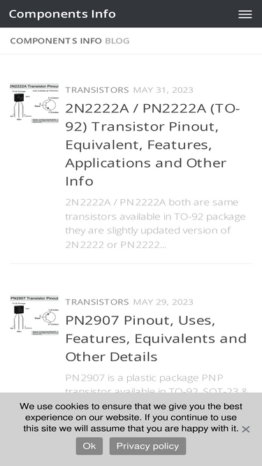 87%At Components Info, accessible from www.componentsinfo.com, one of our main priorities is the privacy of our visitors. This Privacy Policy...