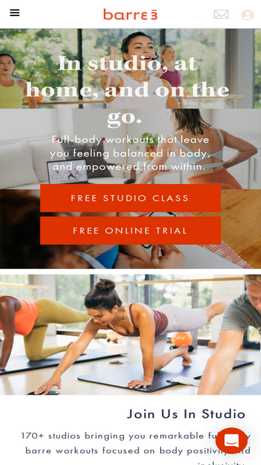 64%barre3® | the workout that redefined barre. low-impact isometric moves, large-range cardio bursts, and mind-centering breath work.