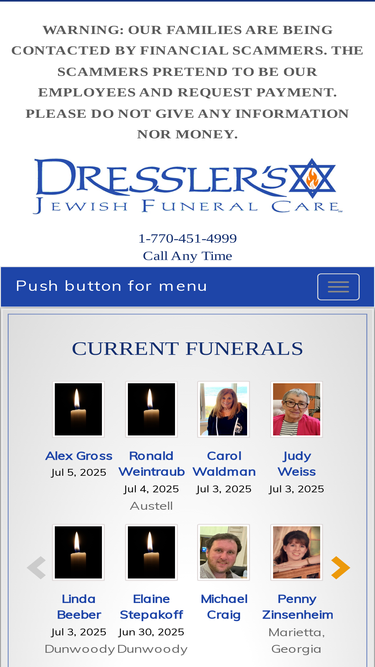 79%Have the Talk of a Lifetime - DRESSLER'S JEWISH FUNERAL CARE offers a variety of funeral services, from traditional funerals to competitively priced cremations, serving Chamblee, GA and the surrounding communities. We also offer funeral pre-planning and carry a wide selection of caskets, vaults, urns and burial containers.