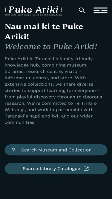 65%welcome to puke ariki - a place of wonder, of excitement, of discovery and adventure. puke ariki comprises a museum, library, research centre, museum store and i-site, with community libraries situated in inglewood, bell block, waitara, urenui, and ōākura.