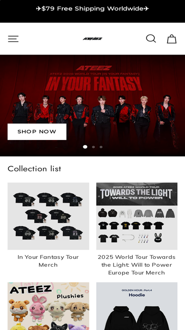 87%Officialateezshop offers 2025 Ateez Tour Hoodie, T-Shirt, Light Stick, Accessories, Caps, etc. 2025&2024 Ateez Towards the Light Will to Power World Tour Merch. Official Merch for fans.Exploring Ateez Golden Hours 1&2, Zero Fever part, The World EP collection. Up to 45% off.$79 Free Shipping Worldwide with Huge Discount. Top Shop for Atiny fans.