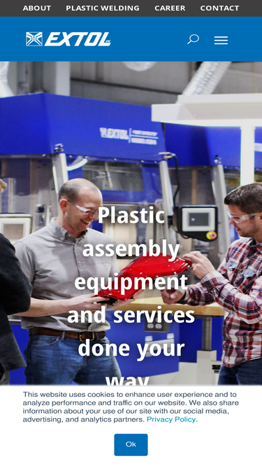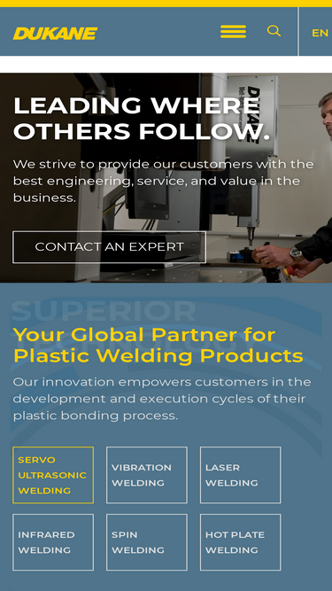 Plastic Welding equipment & tooling, Ultrasonic welding, iQ Servo Ultrasonic Welding, High-Power Ultrasonics, Vibration welding, Hot-Plate welding, Spin welding, Thermal staking, Ultrasonic Cutting and Sealing and Laser Welding Systems.