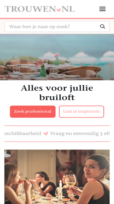 100%je gaat binnenkort trouwen, laat trouwen.nl je helpen om van jouw huwelijksdag een droomdag te maken. trouwen.nl is de grootste trouwsite met de leukste tips, professionals en inspiratie.