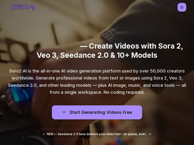 86%Soro 2 AI is an powerful AI video and image creation platform. Generate videos with Sora 2, Veo 3 or create images with Nano Banana at Soro2.ai.