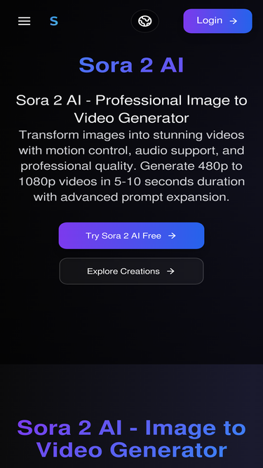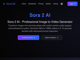 96%Sora 2 AI by - Free image to video generator with audio support. Create 480p-1080p videos, 1 minute duration. Download HD videos with motion control and prompt expansion for creative content and storytelling video.