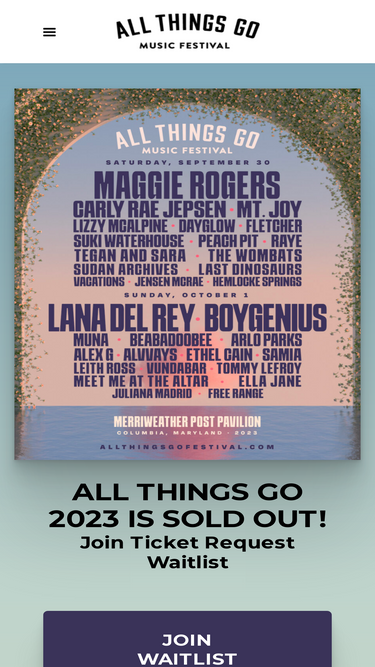 87%Immerse yourself in the vibrant rhythms of the All Things Go Music Festival. Held in Columbia, Maryland, just outside Washington D.C., this electrifying outdoor event promises a weekend of unforgettable performances and cherished moments. Established in 2014 as the All Things Go Fall Classic, our festival is meticulously curated by the passionate team at All Things Go. Join us and experience the pulse of the music scene like never before.