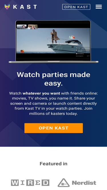 85%Kast is a live streaming hangout for friends that want to watch together. Share videos, movies, live content, and games with friends in your own watch party.