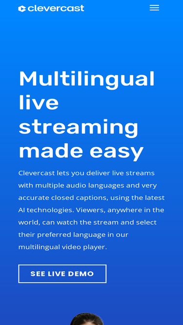 73%clevercast lets you deliver live streams with multiple audio languages and very accurate closed captions, using the latest ai technologies.