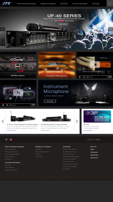 jts is a leading designer and manufacturer of professional wireless and wired microphones for vocal and musical instruments. jts provides wireless microphone system , wireless microphone, wireless monitoring system, stage / broadcast microphone system, instrument microphone, wireless camera system, wired microphones, conference system, tour guide system, portable sound system, interpretation system, headphones / earphones, installation microphone and microphone accessories.