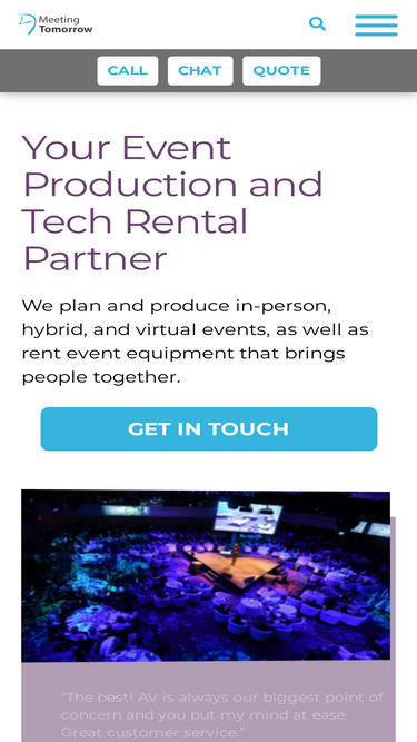 65%Nationwide corporations trust Meeting Tomorrow for perfect events. For all AV & event technology call us - 877-633-8866!