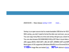 78%Ventoy is an open source tool to create bootable USB drive for ISO files. With ventoy, you don't need to format the disk again and again, you just need to copy the iso file to the USB drive and boot it.