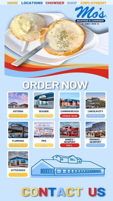 official page mo's restaurants serving seafood and chowder with locations in astoria, cannon beach, florence, lincoln city, newport, otter rock, pdx and seaside