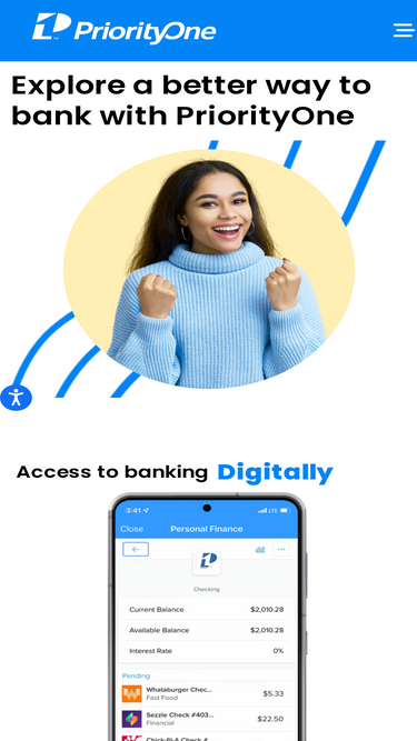 87%Priority One Bank offers a range of banking services to meet your personal and business needs. Experience exceptional customer service, competitive rates, and a commitment to your financial success. Discover our products today!