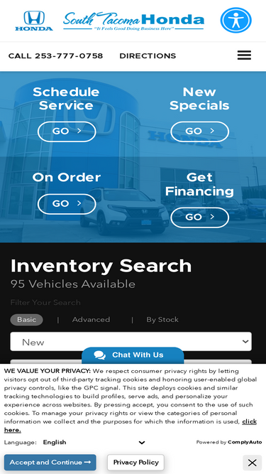 87%looking for a new honda vehicle, used car, service, or parts? south tacoma honda is your local tacoma honda dealership! give us a call or swing by today.