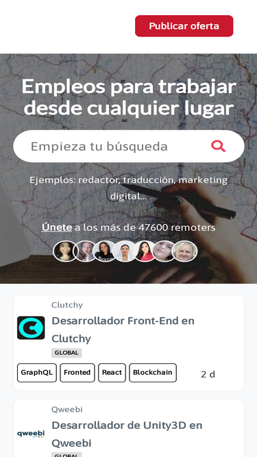 80%Ofertas de empleo remoto y teletrabajo, miles de ofertas de trabajo a realizar desde casa, contenido revisado. Únete a la comunidad remota más grande en español.