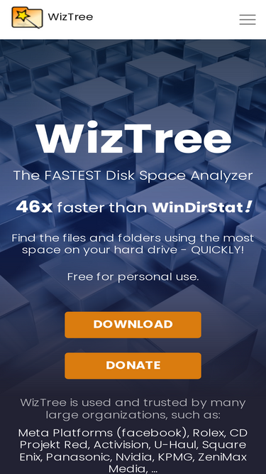 89%official wiztree web site. wiztree is the fastest disk space analyzer available for windows. it reads the master file table (mft) directly from the disk, bypassing windows and gaining a huge performance boost.
