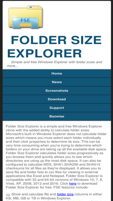 81%a simple and free windows explorer that shows folder sizes and more... adds explorer columns for folder size, file and folder count, md5, sha-1, sha-256 checksums calculated for all files. export and save explorer folder and file lists to csv files..