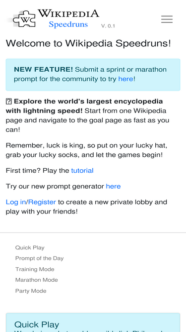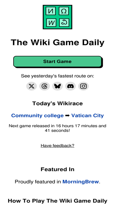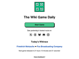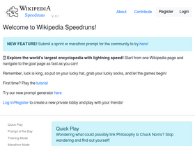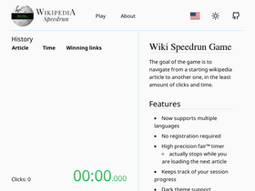 39%play the wikipedia speedrun game: race from one wiki article to another with the fewest clicks and fastest time! challenge yourself and improve your knowledge.
