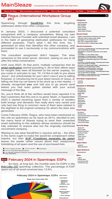 The other five competitors in the top 10 list are mainsleaze.spambouncer.org, allspammedup.com, spamlaws.com, , and .