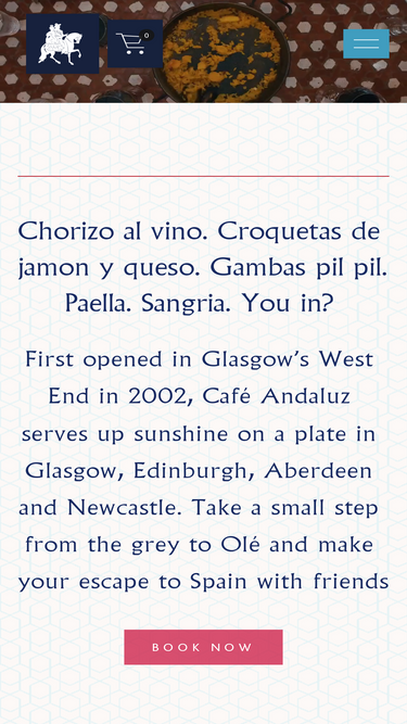 92%Catch ups with with friends or celebrations with family, enjoy the vibrant flavours of Spain in an authentic Andalucian atmosphere. Cafe Andaluz restaurant has been a Mediterranean crowd pleaser since 2002, when we first brought the taste of Spain to Glasgow’s West End and we haven’t stopped serving