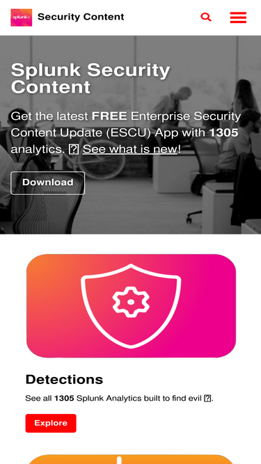 68%Welcome to Splunk Security Content See What Is New! - Latest Update: v5.23.0 Download Latest Version 2004 Splunk Detections built to find evil. Detections 343 Analytic Stories to address use cases. Analytic Stories 86 Automated playbook responses. Playbooks What's New Enable your SOC with Proven detections This project gives you access to our repository of Analytic Stories that are security guides which provide background on TTPs, mapped to the MITRE framework, the Lockheed Martin Kill Chain, and CIS controls.